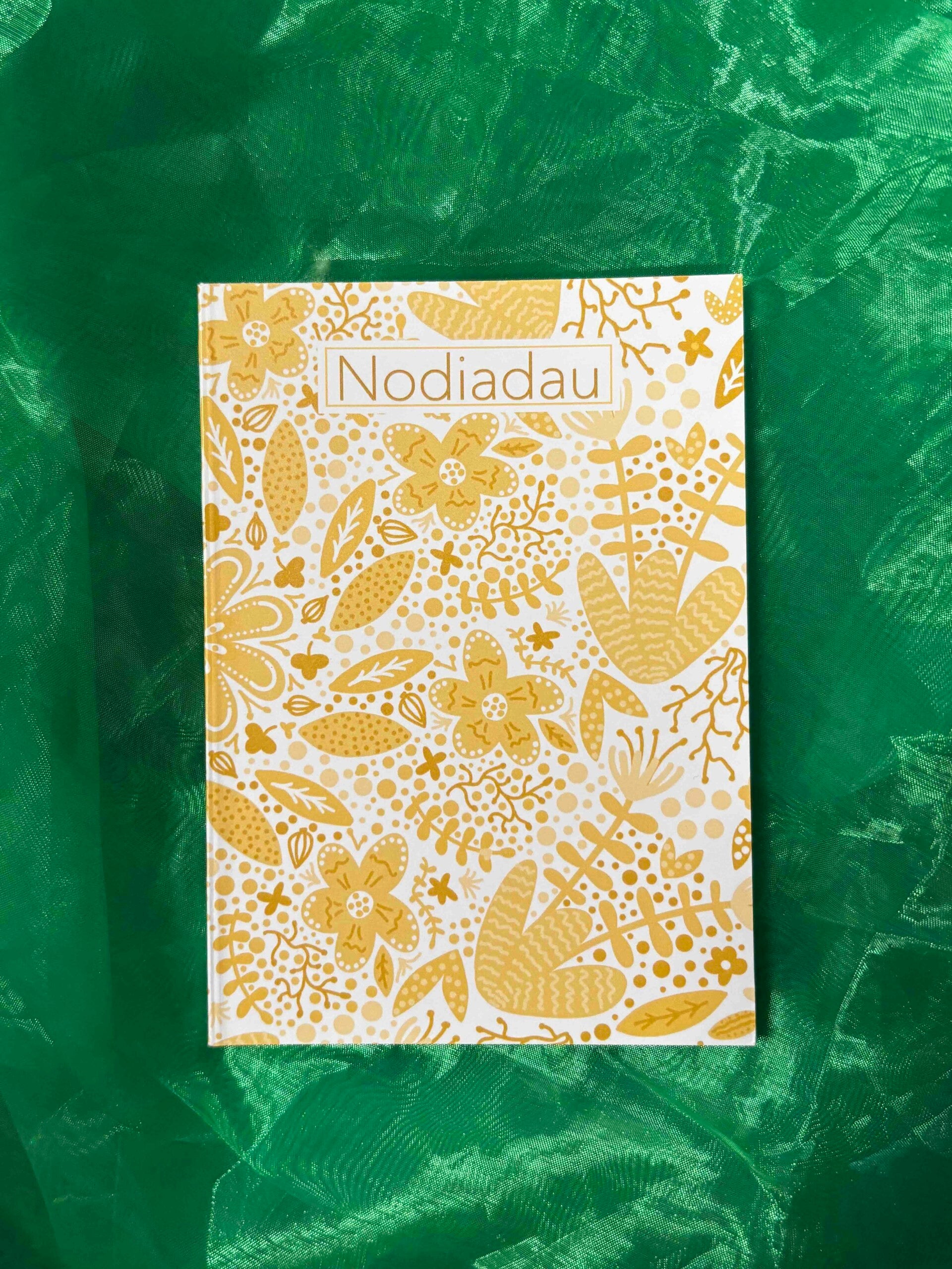 Nodiadlyfr wedi'i dylunio gan Rebecca Robinson. Maint A7